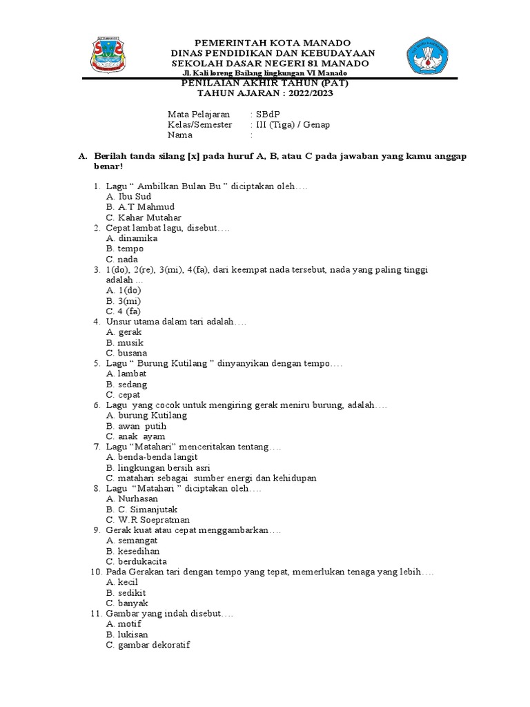 Semester genap SBdP kelas 3 biasanya mencakup berbagai materi menarik, mulai dari seni musik, seni rupa, seni tari, hingga seni teater dan prakarya. Untuk membantu para siswa mempersiapkan diri dengan matang dan para pendidik dalam menyusun perangkat penilaian, artikel ini akan menyajikan sebuah kumpulan contoh soal PAT/UKK SBdP kelas 3 semester genap yang dirancang untuk mengukur pemahaman dan keterampilan siswa secara menyeluruh.