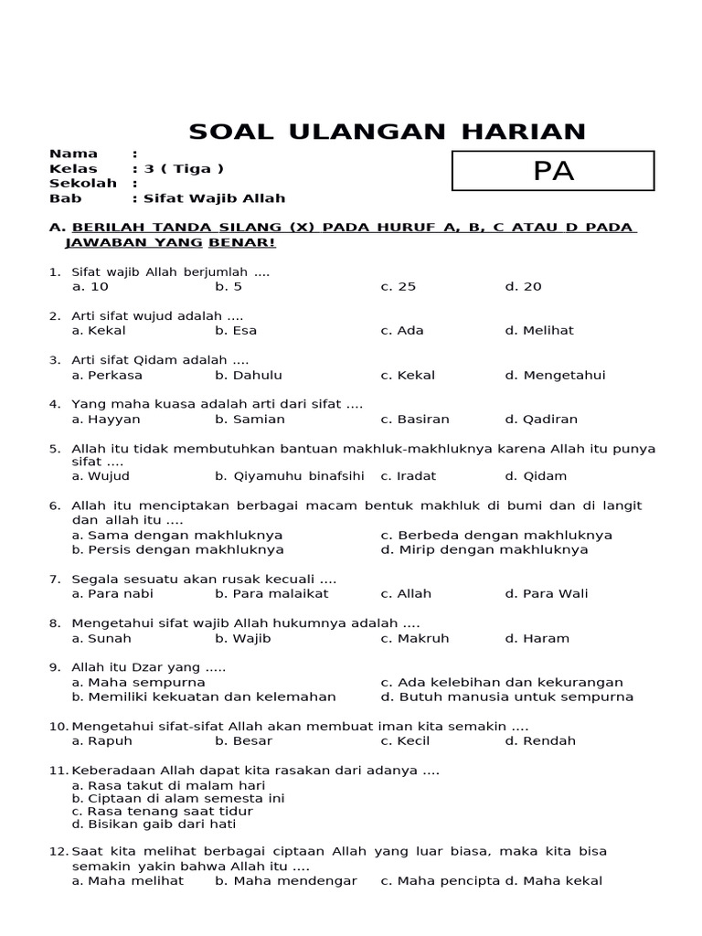 Artikel ini akan mengulas secara mendalam mengenai kumpulan soal PAI Kelas 3 SD yang relevan untuk konteks pembelajaran di Bogor. Kita akan membahas jenis-jenis soal yang umum dijumpai, materi-materi kunci yang perlu dikuasai, serta tips bagaimana soal-soal ini dapat dimanfaatkan secara optimal oleh guru dan siswa.